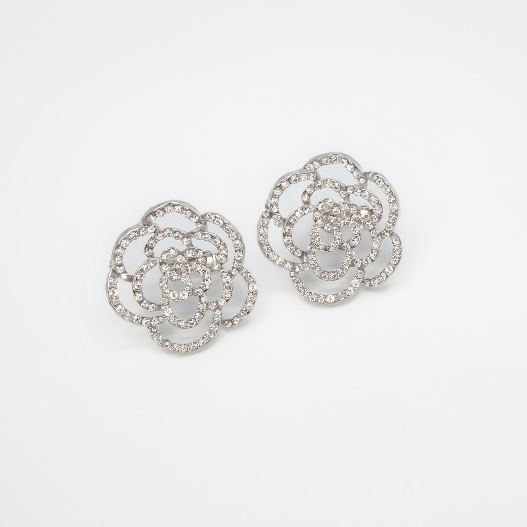 - filigran funkelnder Blumen-Ohrschmuck in Kamelien-Form