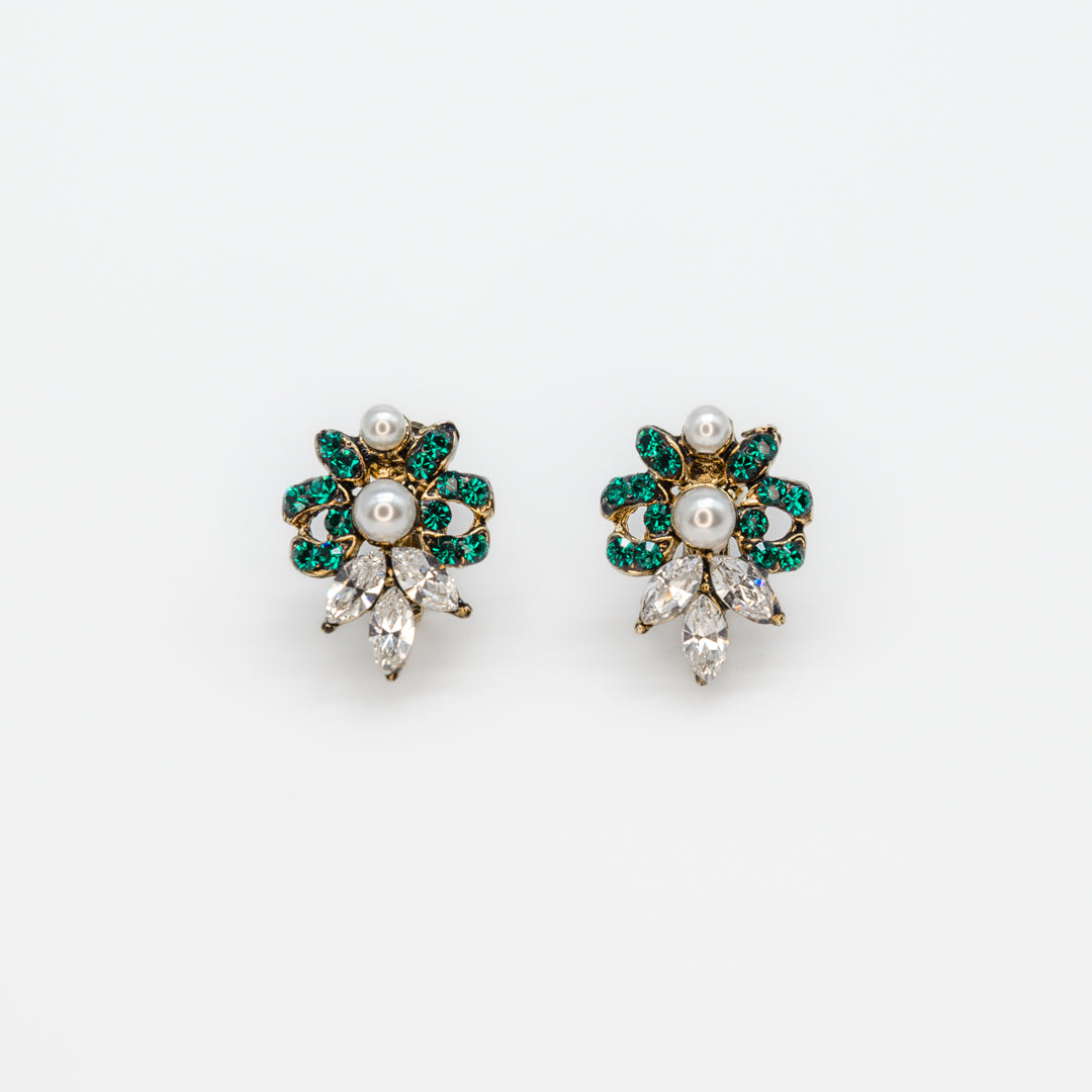 - Grundmaterial Messing, Farbe der Fassung altgold, silber, schwarz erhältlich, überzogen mit funkelnden Kristallen und Perlen von Swarovski® in unterschiedlichen Farben.