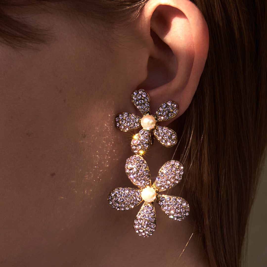"Violetta" Blumen-Ohrschmuck verleiht Deinem Look sofort einen Hauch von Glitzer. Die kleinen Swarovski-Kristalle reflektieren das Licht in den unterschiedlichsten Nuancen. So strahlst du mit der Sonne um die Wette.