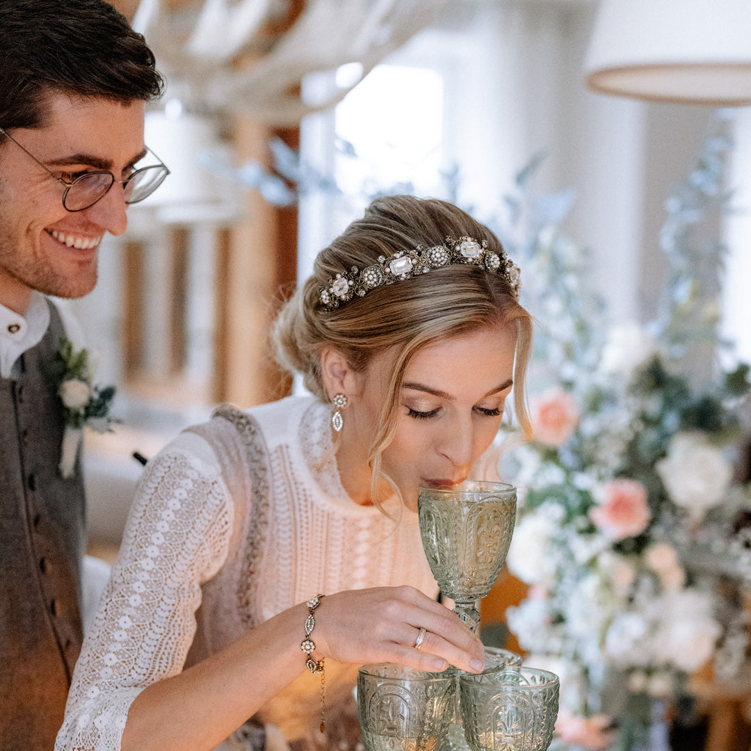 - Parfum, Cremes oder Haarspray bitte vor dem anlegen des Schmucks auftragen, sonst kann es durch den enthaltenen Alkohol die Kristalle und Perlen beschädigen